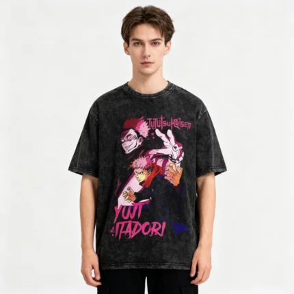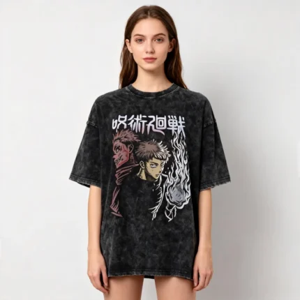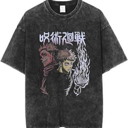 Jujutsus Anime Shirt Kaisens Vintage Washed Tshirt Graphic Fashion Tee For Women Men