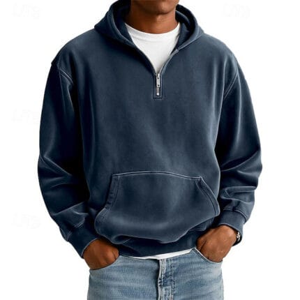 Men’s Hoodie Quarter Zip Hoodie Black Light Green Wine Army Green Royal Blue Hooded Plain Drawstring Pocket Sports & Outdoor Daily Holiday Polyester Streetwear Basic Casual Spring Fall Clothing