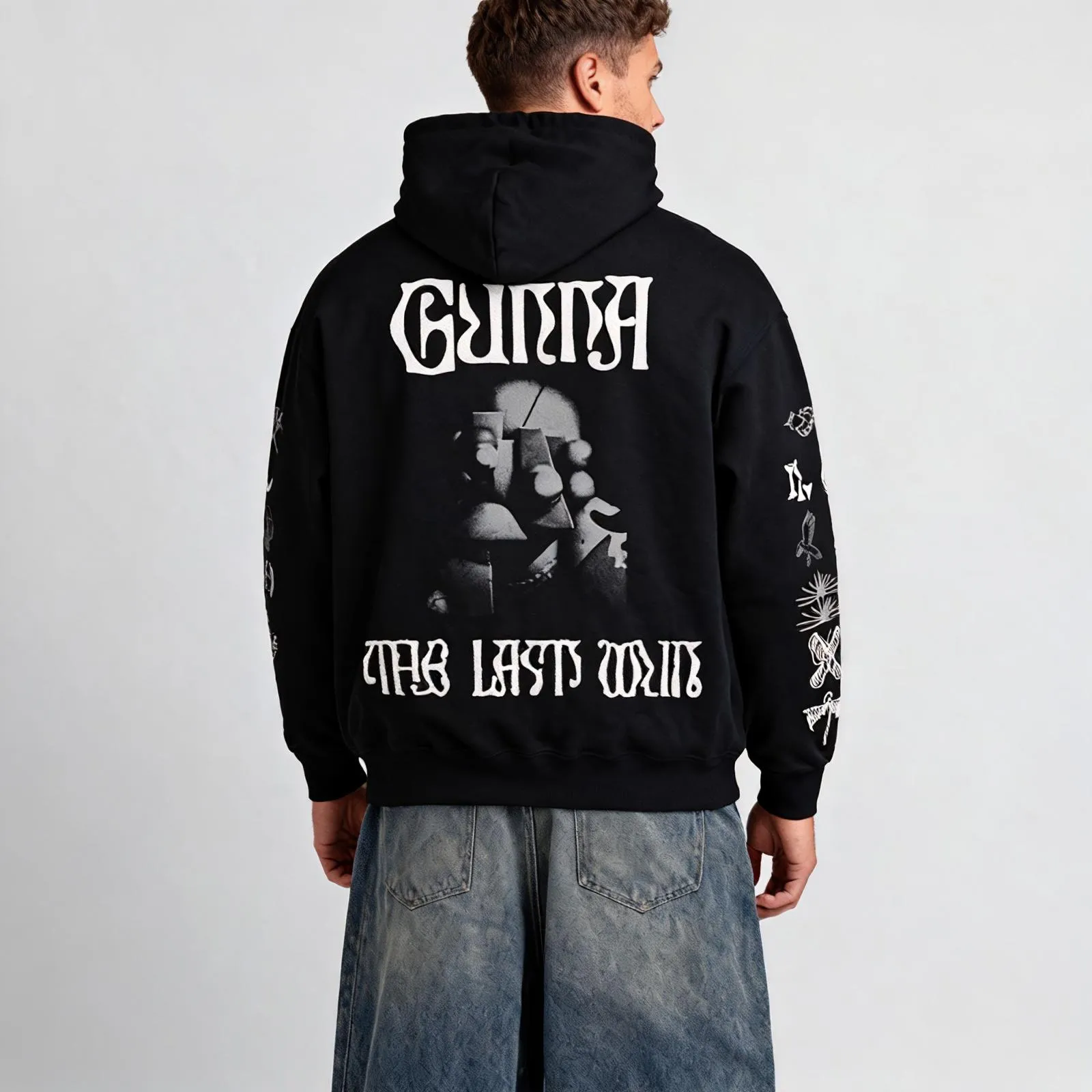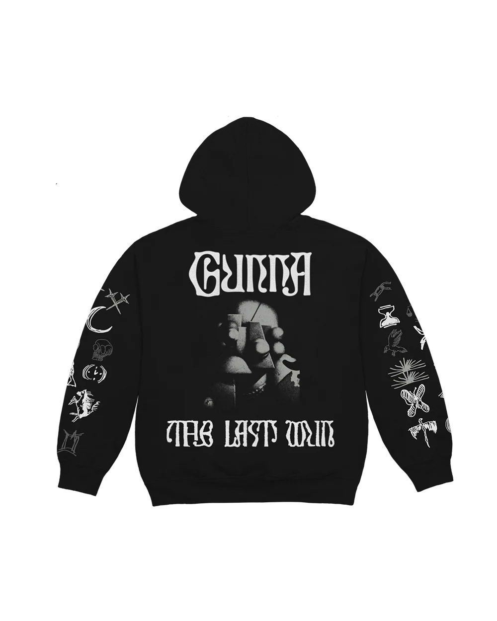 Inspired by Gunna’s THE LAST WUN era, this hoodie features a bold collection of symbolic motifs that capture his evolving aesthetic — sleek, modern, and luxuriously minimal. Each graphic carries the distinct energy of his new visual identity.