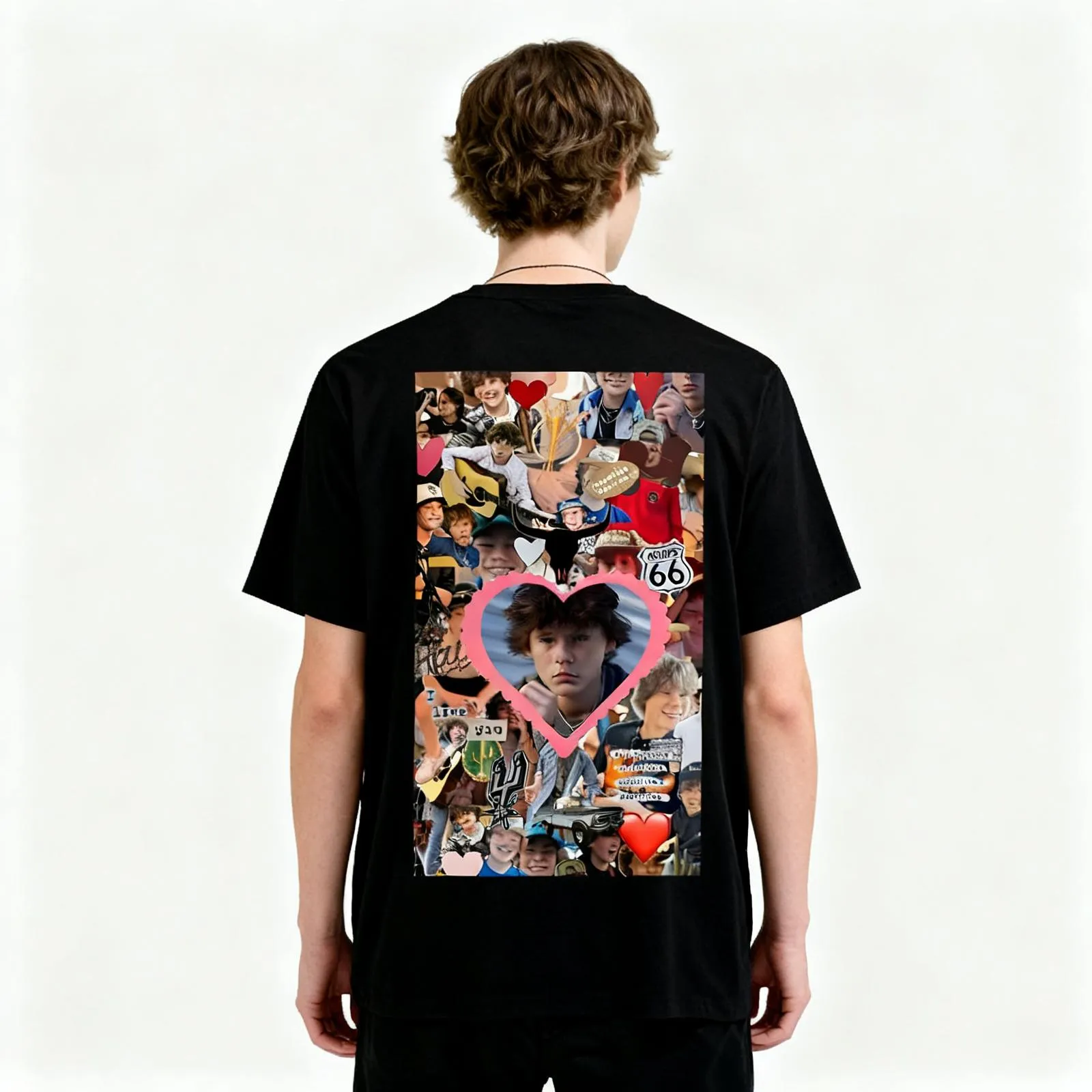 With beautiful portrait collages and profound love quotes, this T-shirt is not only a fashion item, but every detail of it has been carefully designed to bring each fan closer to their loved ones.