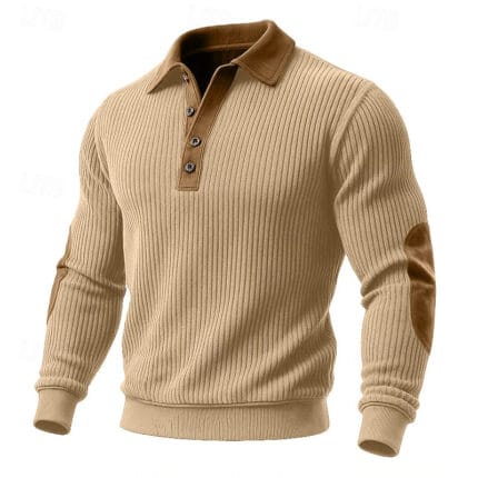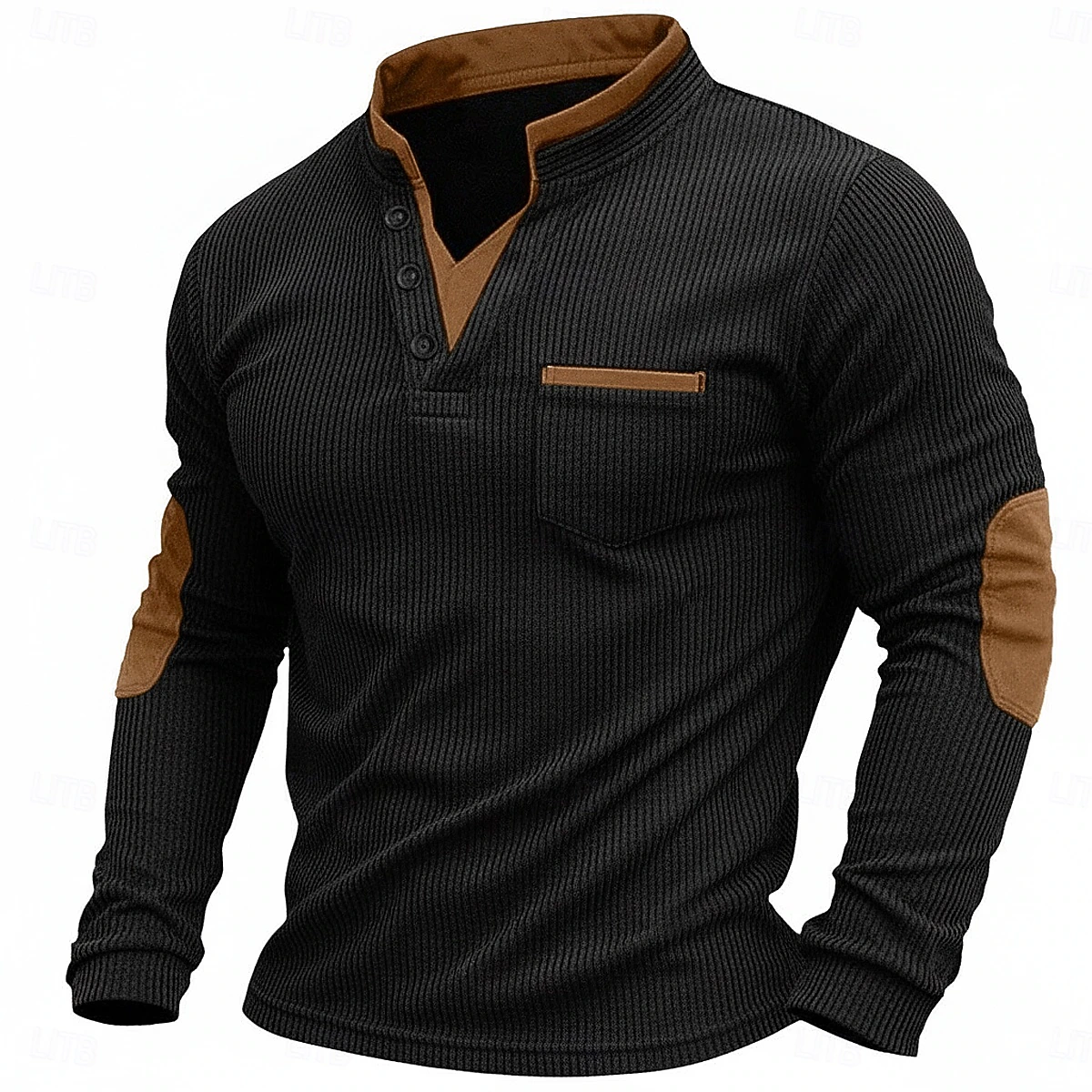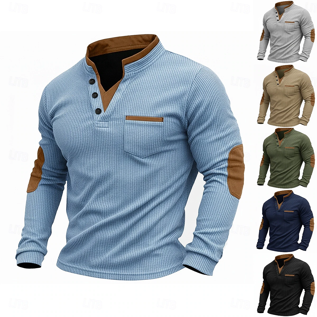 Men’s Corduroy Shirt Henley Shirt Tee Top Long Sleeve