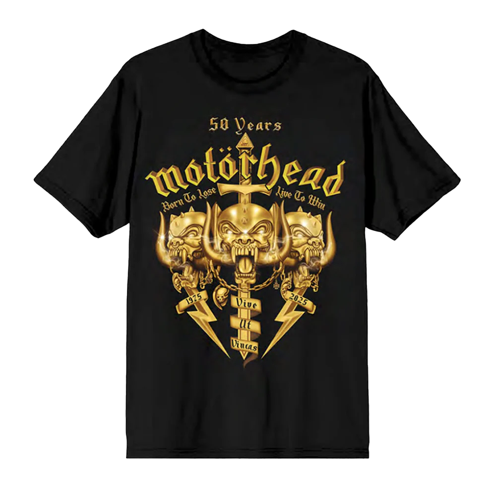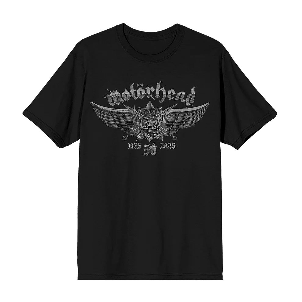 Motörhead 50th 1975-2025 Unisex T-Shirt features artwork inspired by the 50th anniversary of Motörhead.