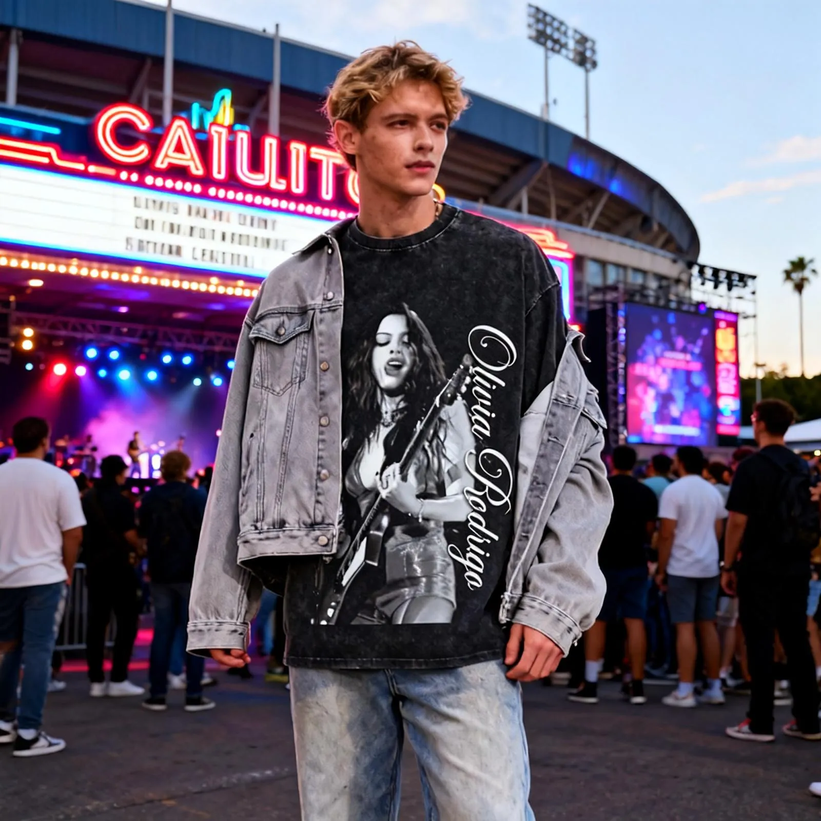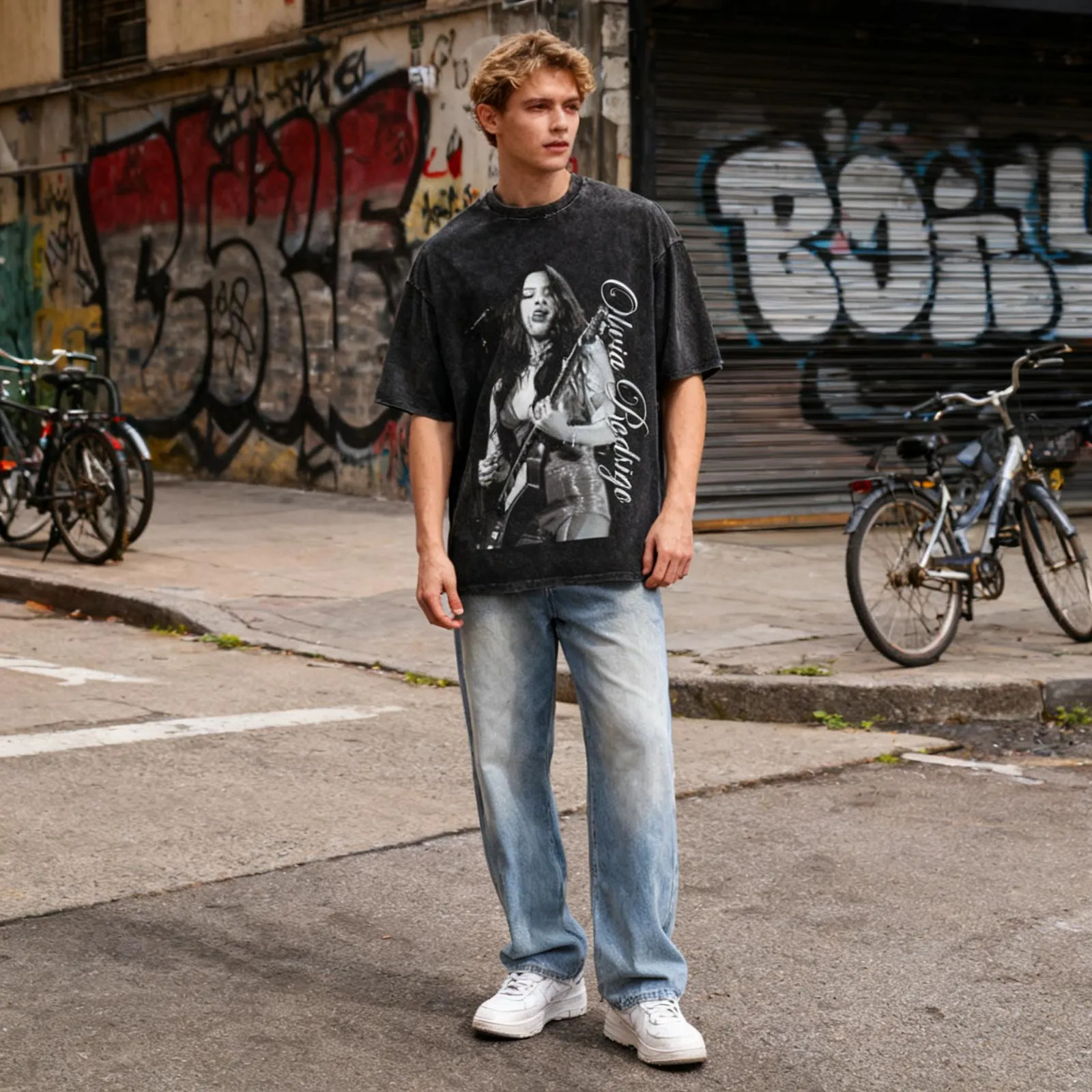 Inspired by Olivia Rodrigo’s fearless pop-punk spirit, this T-shirt features a vibrant print design that captures her emotional honesty and youthful energy. Perfect for fans who love to express themselves through fashion and music.