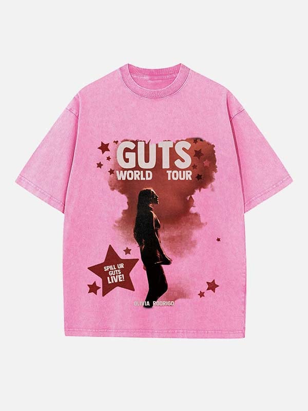 Inspired by Olivia Rodrigo’s fearless pop-punk spirit, this T-shirt features a vibrant print design that captures her emotional honesty and youthful energy. Perfect for fans who love to express themselves through fashion and music.