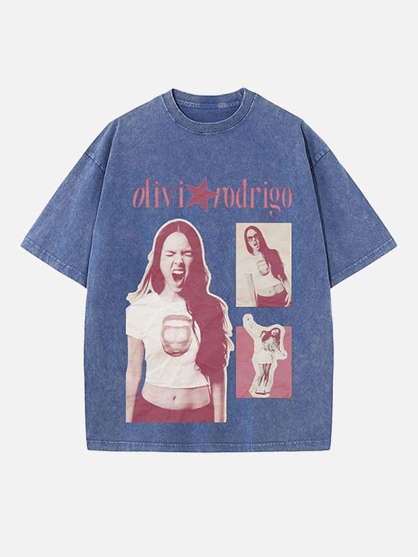 Inspired by Olivia Rodrigo’s fearless pop-punk spirit, this T-shirt features a vibrant print design that captures her emotional honesty and youthful energy. Perfect for fans who love to express themselves through fashion and music.