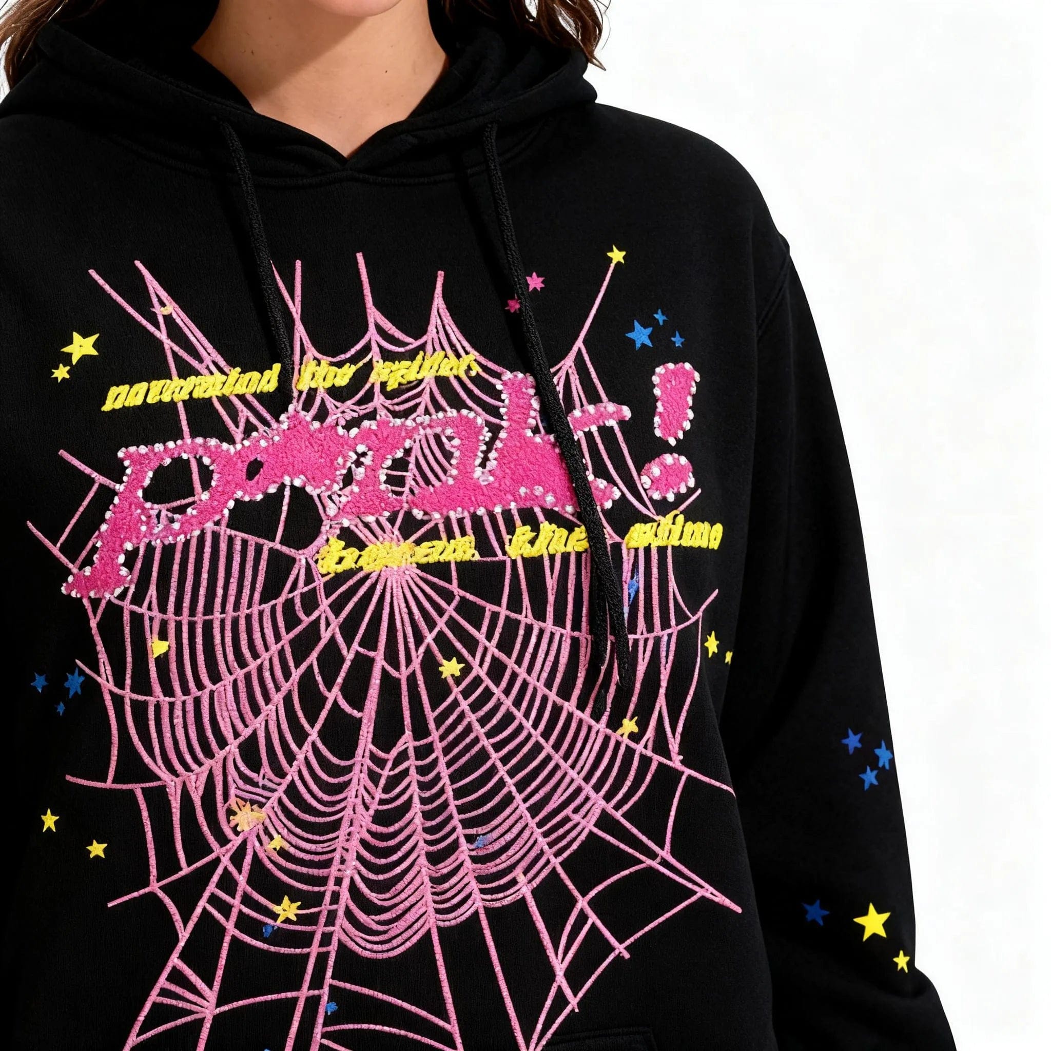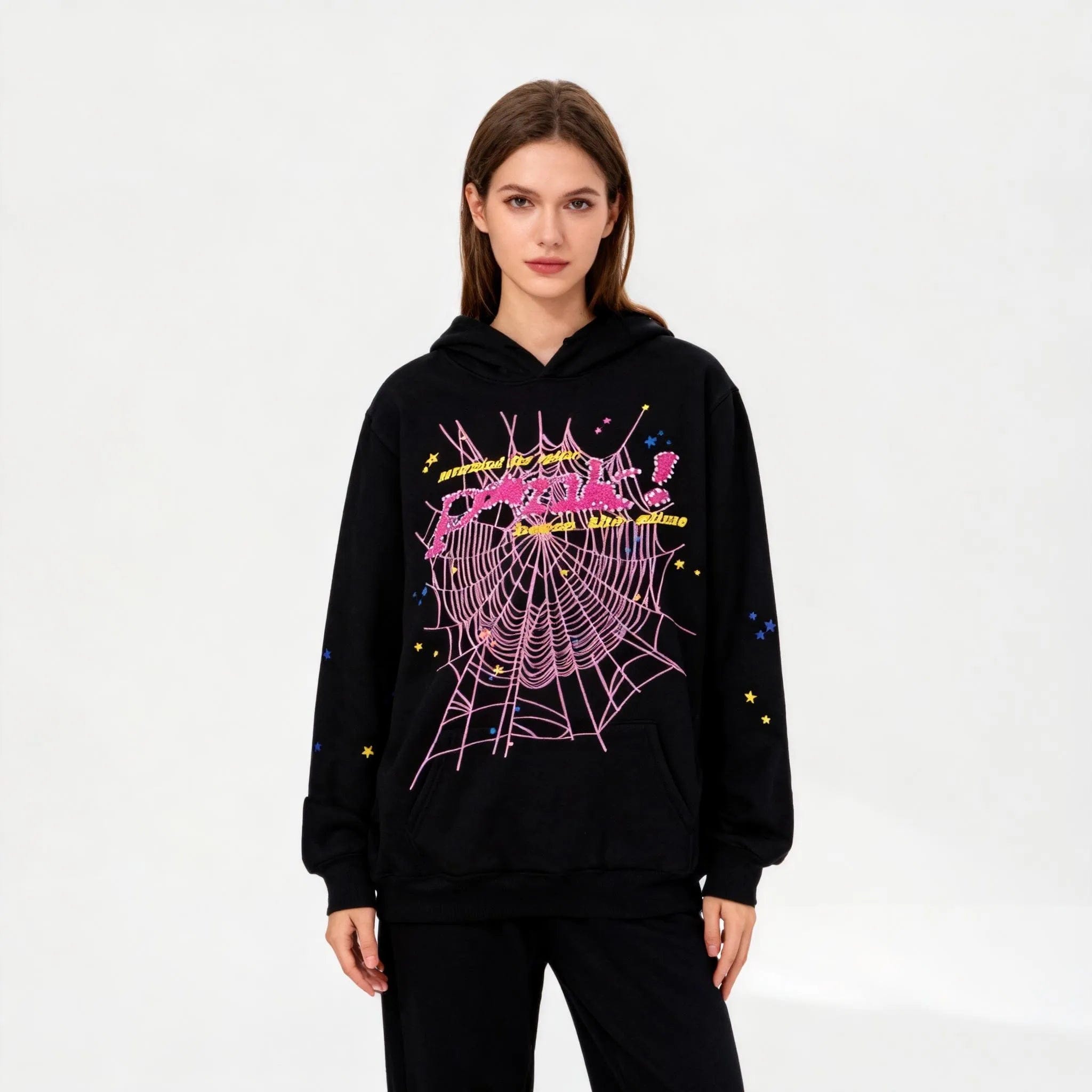 - Features:Y2K streetwear hoodies feature spider web graphic prints and colorful star details. The spider web graphic hoodies include pink and black spider hoodies for you to choose from. It is recommended to machine wash in cold water or hand wash; do not bleach; hang dry