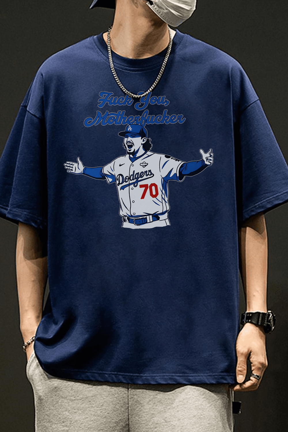 Team Logo: Subtly incorporate iconic elements of the Los Angeles Dodgers, such as Dodgers blue, baseball patterns, or the team logo, to demonstrate support for the team.
