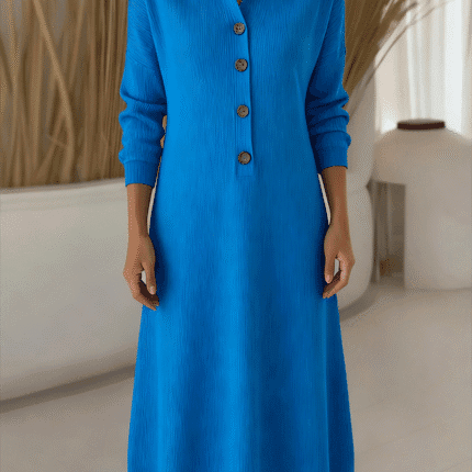 Classic Polo Collar Button Solid Color Knitted Midi Dress