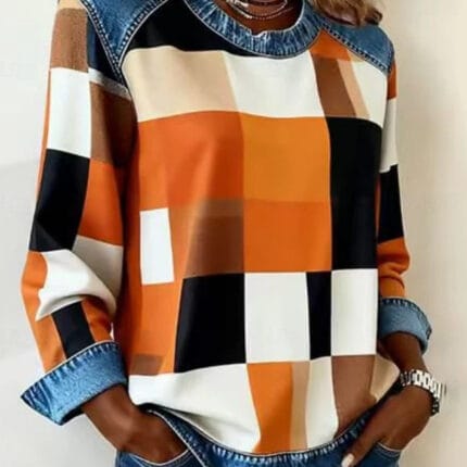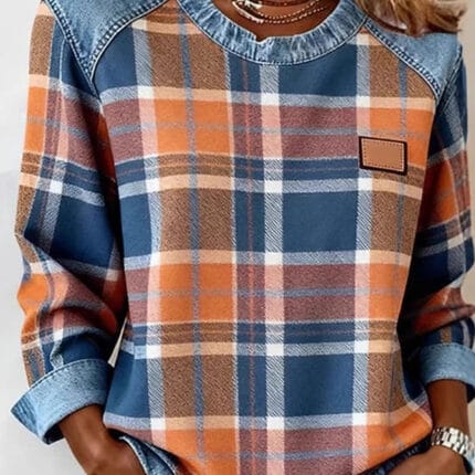 Women’s Pullover Sweatshirt Plaid Active Vintage Fashion Long Sleeve Round Neck Regular Tops Home Work Street Ocean green Orange color Black Red khaki Spring Fall Winter